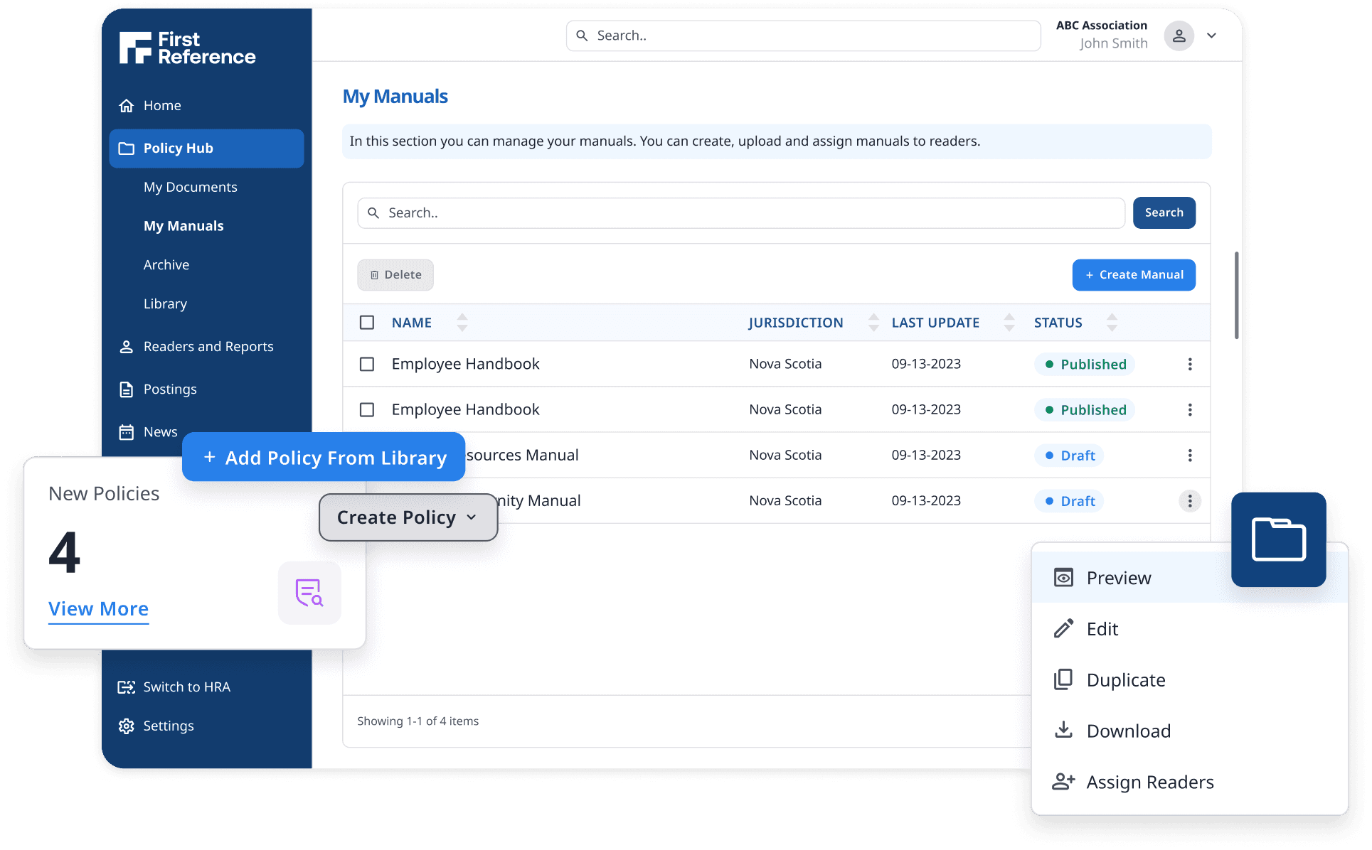 Access policies from the library (policies that are already created), and keep track of updates, all in one place.