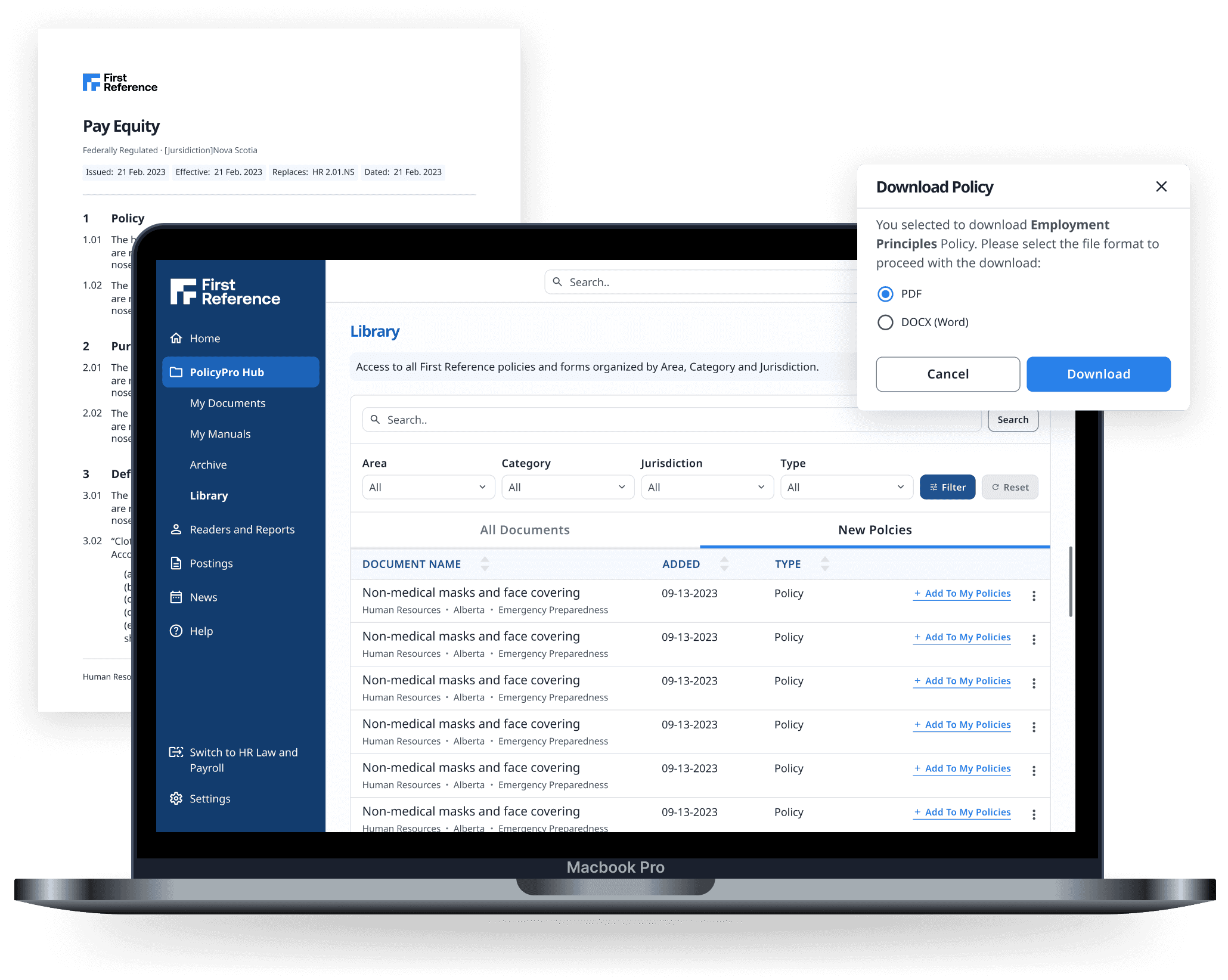 Quickly search, filter, and download policies from the library in PDF or Word format, ready to customize and use.